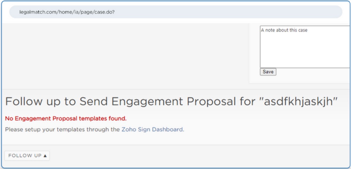 - Take a case and Send an Engagement Proposal. If templates are not set up, it should prompt the following.
