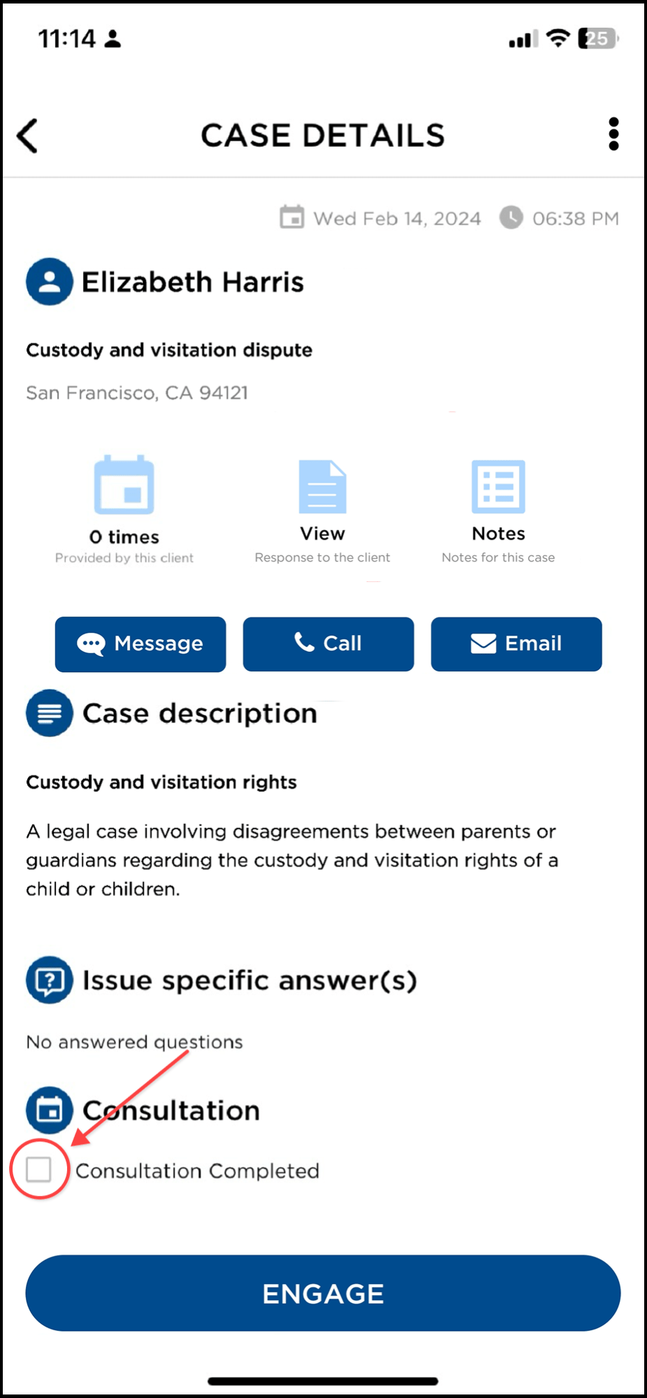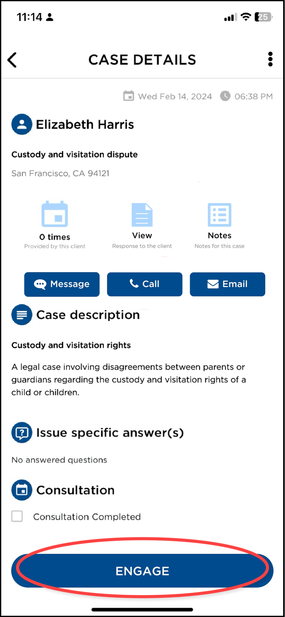 Note: We highly recommend you reply even if you don’t immediately see the value in a given lead. Many clients prefer to keep confidential information offline, and it would be a mistake to assume the case details we send are always complete or even entirely accurate. While some percentage of clients will not be a good match for your practice, you cannot know which ones solely from the information in their case details.