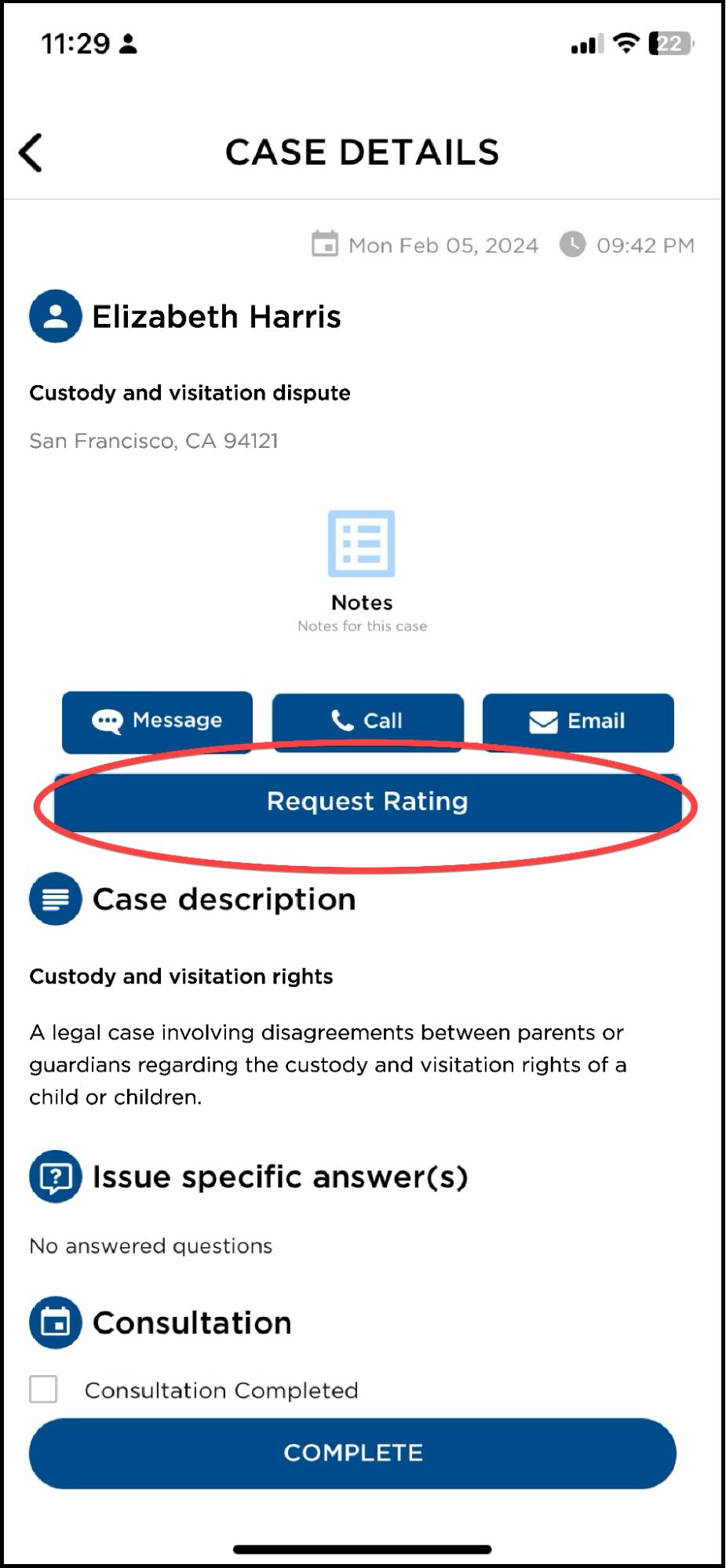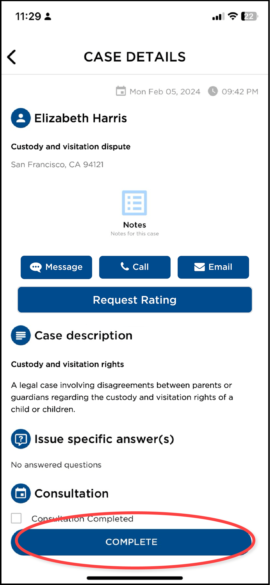 Once you finish working on a LegalMatch case, please click the COMPLETE button and provide additional feedback to help us better understand the kind of cases you consider to be of the highest quality and greatest value to you.