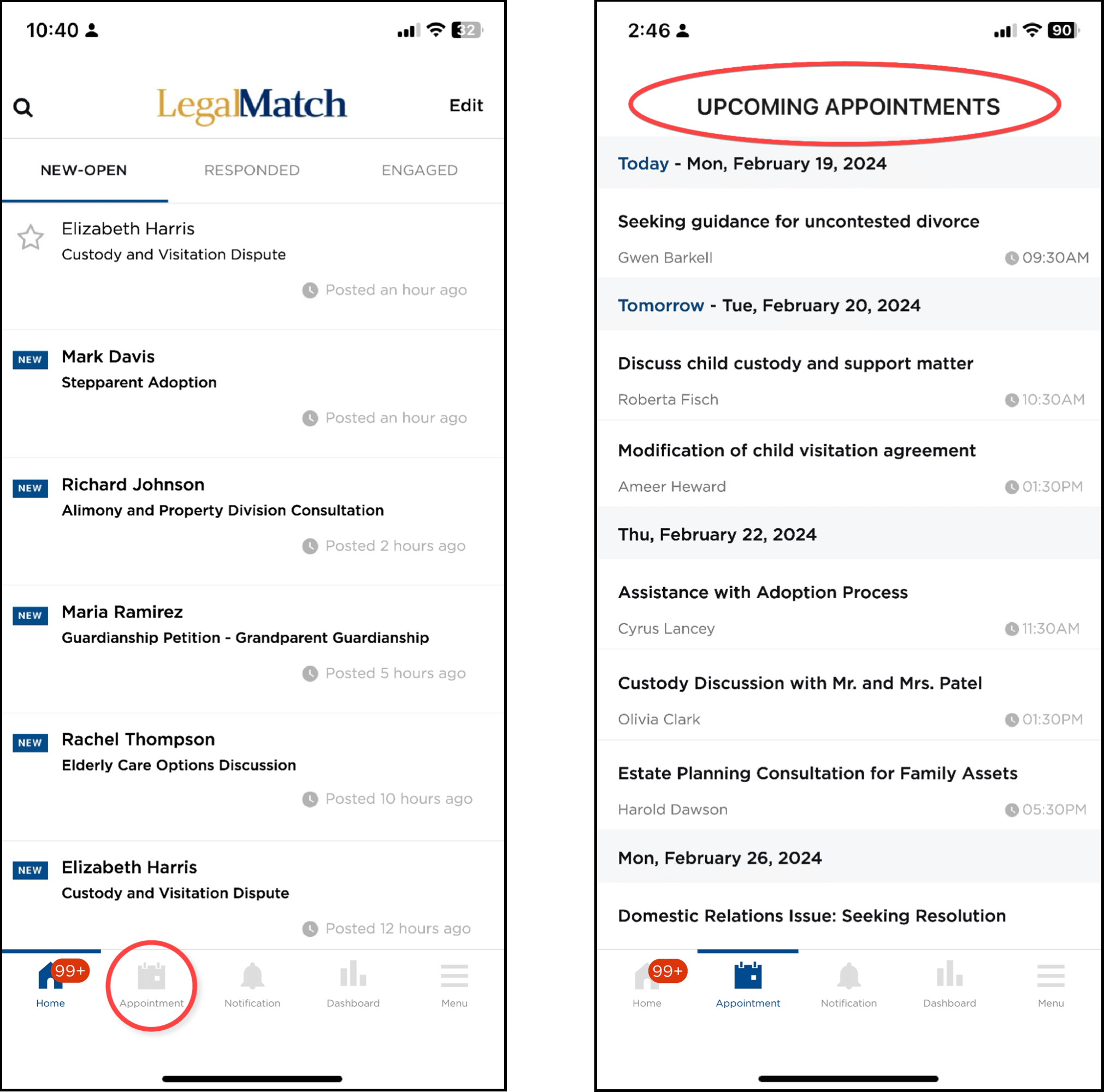 To keep track of your appointments, tap the Upcoming Appointment icon where you can view all the initial consultation appointments you and the clients have scheduled.