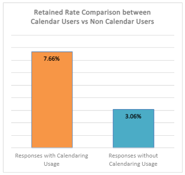 Lawyers that use the Calendaring feature has more than twice more Retained rate than those Lawyers who do not use the feature.